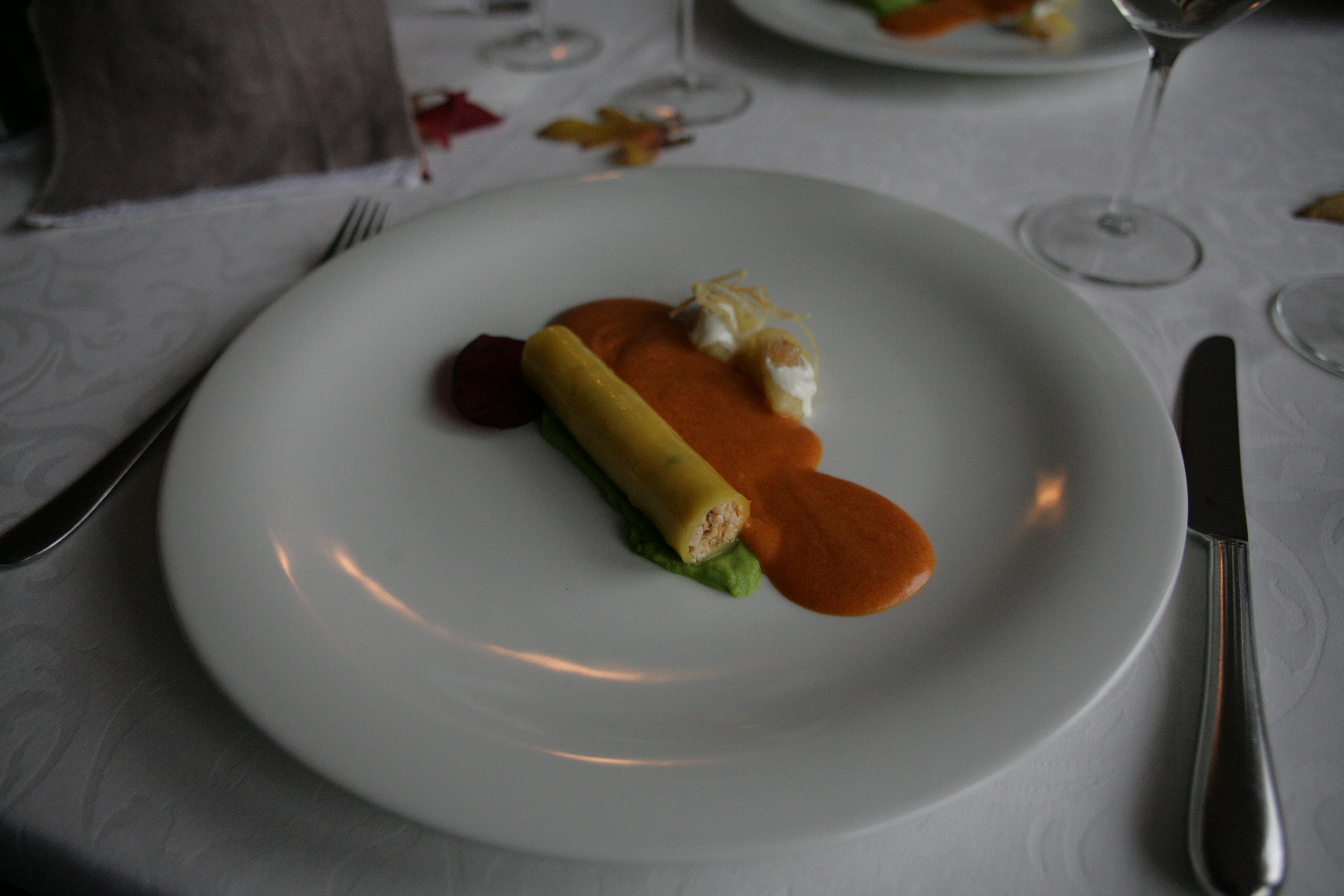 Das erwähnte Paprikasch ist eine köstlich abgeschmeckte seidige Paprika-Sauce mit saftigem Huhn, die Nudeln fest und tadellos frisch, alles zusammen ansehnlich angerichtet. Die Prekmurska Gibanica, den berühmten slowenischen Mohnauflauf, bekommt man kaum wo besser, als er hier serviert wird. Und die Roten-Rüben-Tascherln mit Frischkäse mögen von den unweit nördlich gelegenen »Saziani Stub’n« abgeschaut sein, schmecken aber trotzdem ganz hervorragend. So gut und günstig (35 Euro für ein fünfgängiges Menü!) muss man in Österreich einmal wo essen.